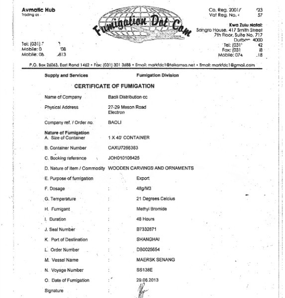 3.熏蒸证 :