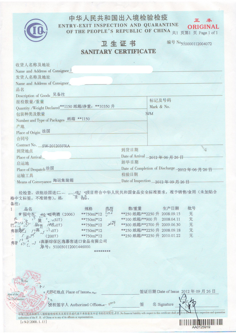 5.如是食品|酒类|橄榄油等,请确认贵司是否有相应资质,如没有我司提供资质双抬头申报