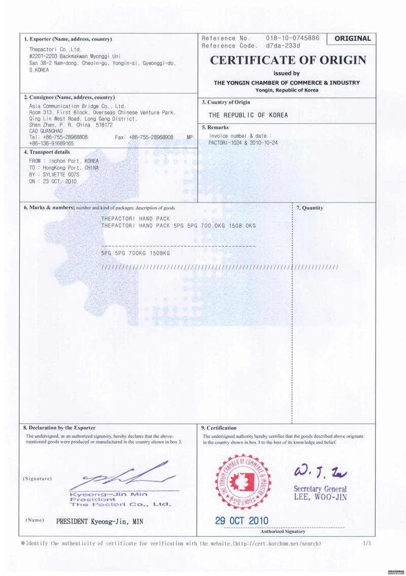 4. 货到香港后,我司负责换单提货仓储事宜,安排香港中检公司做检验,中检检验出合格证,申办《进口旧机电产品装运前检验证书》;