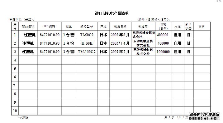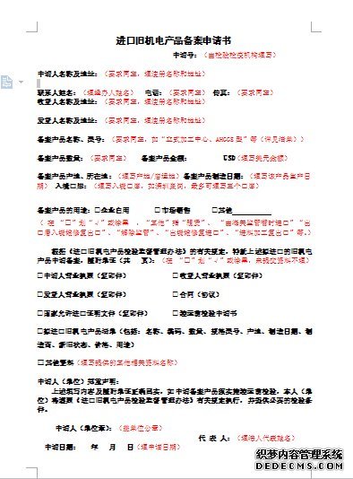 1、《进口旧机电产品备案申请书》
