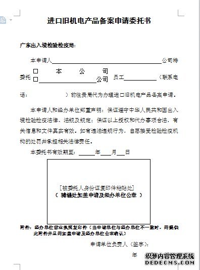 1.《进口旧机电产品备案申请委托书》;