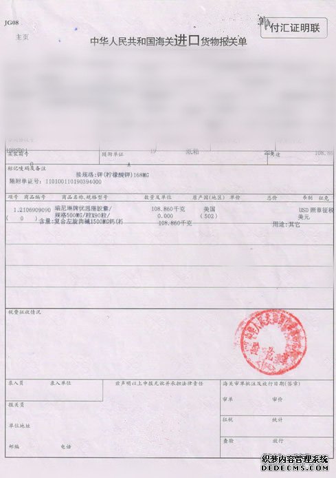 1.合同 2.发票 3.装箱单 4.产地证 5.国外卫生证 6.灌装日期证明 7.原版标签 8.成分分析报告