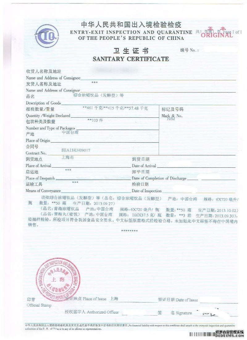 6.出卫生证书,经过相关检测,产品合格后。商检部门会出具检疫检验合格证书,以便在市面上的正常流通和销售。